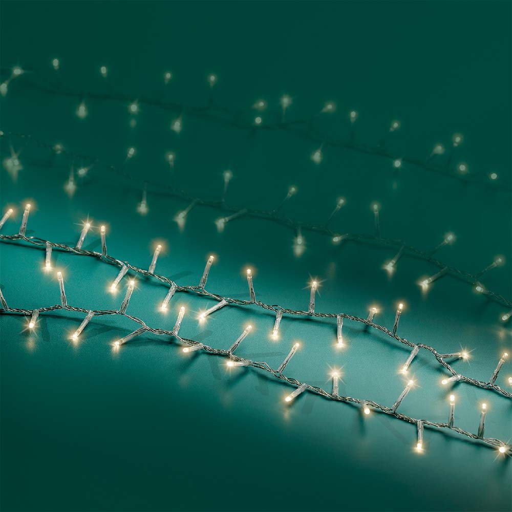 Create an enchanting ambiance in your space with these LED Compact Lights. The strand has 1000-bulbs on a 74 foot wire. The warm white lights against a transparent background bring a cozy feel to your outdoor or indoor decorations, making them perfect for any occasion.