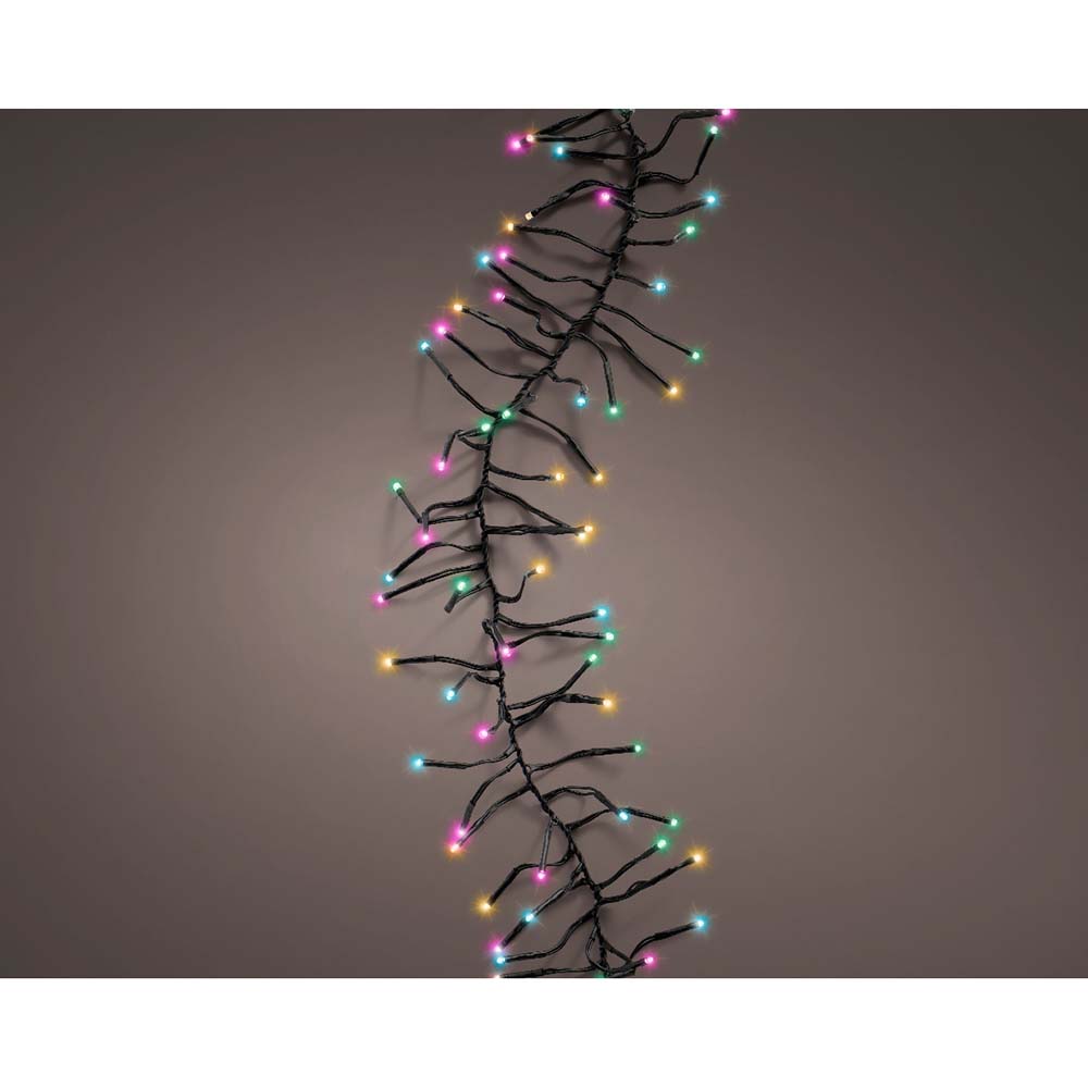 Add vibrant color and dynamic effects to your decorations with the Multi-Function LED Cluster Lights (KM783735). This string features 768 soft multi-color LED bulbs along a 39-foot total length, including 23 feet of illuminated wire. The 16.4-foot lead wire allows for flexible setup, while 8 lighting functions let you create various festive effects. Designed for both indoor and outdoor use, these cluster lights are ideal for trees, garlands, wreaths, or any holiday or party display that needs bright, colorful illumination.