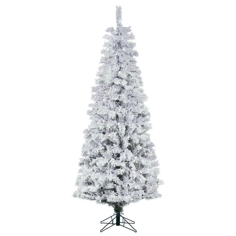 Bring elegance and charm to your holiday decor with the Vickerman 5.5' Flocked Pacific Artificial Christmas Tree (Model A100356LED). Featuring 252 flocked PVC tips, this tree creates a stunning snow-dusted look. Prelit with 200 warm white single mold Italian mini LED lights, it offers an even glow for a warm holiday ambiance. The hinged metal branch design allows quick assembly and efficient storage, while its sturdy construction supports ornaments and seasonal decorations. The compact 5.5' height and 30" spread make this tree perfect for apartments, cozy corners, or accent displays. Complete with a convenient step switch and metal stand, it delivers style, convenience, and lasting quality.