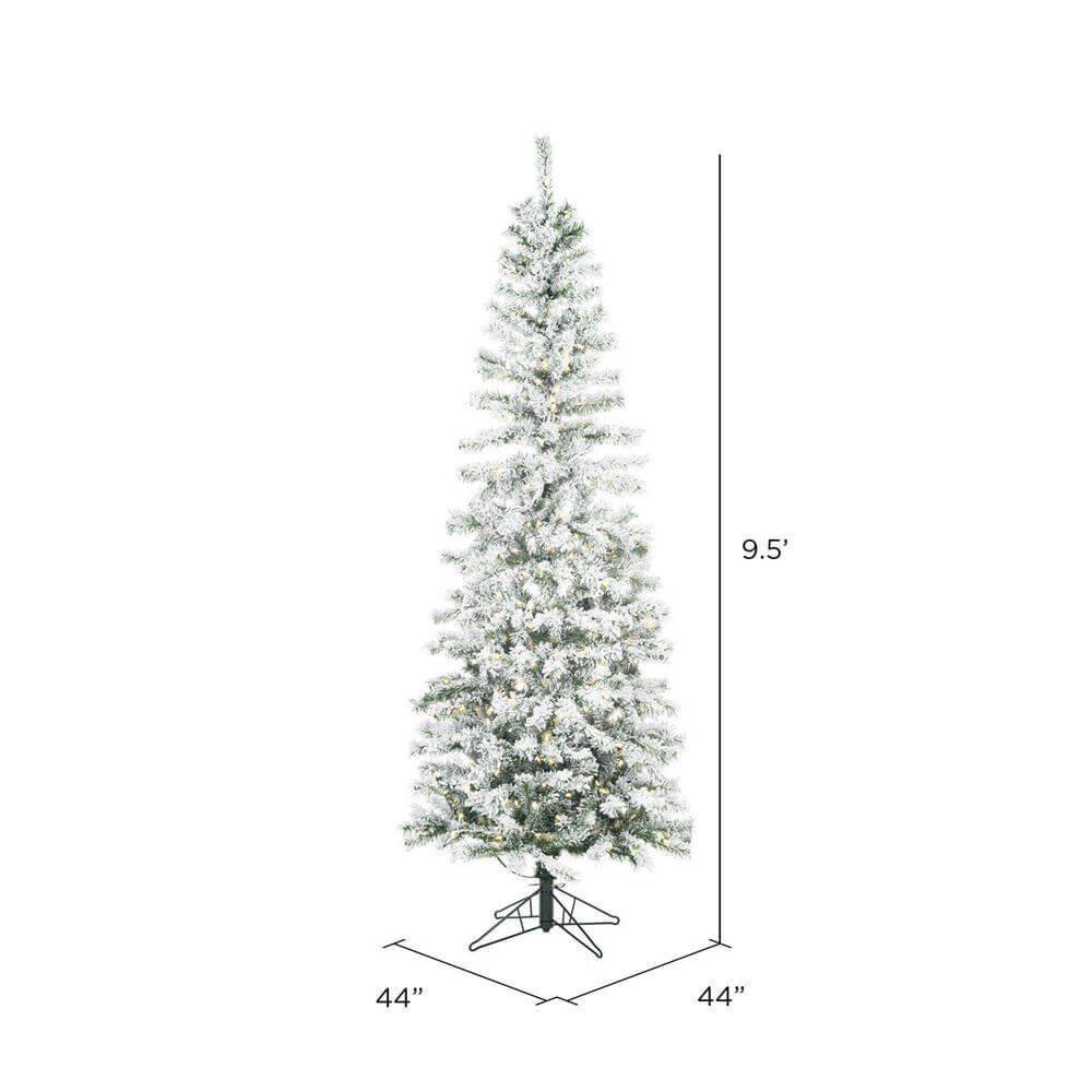 Flocked Pacific Pencil Artificial Christmas Tree with Warm White LED Lights - 9.5' VM-A100386LED