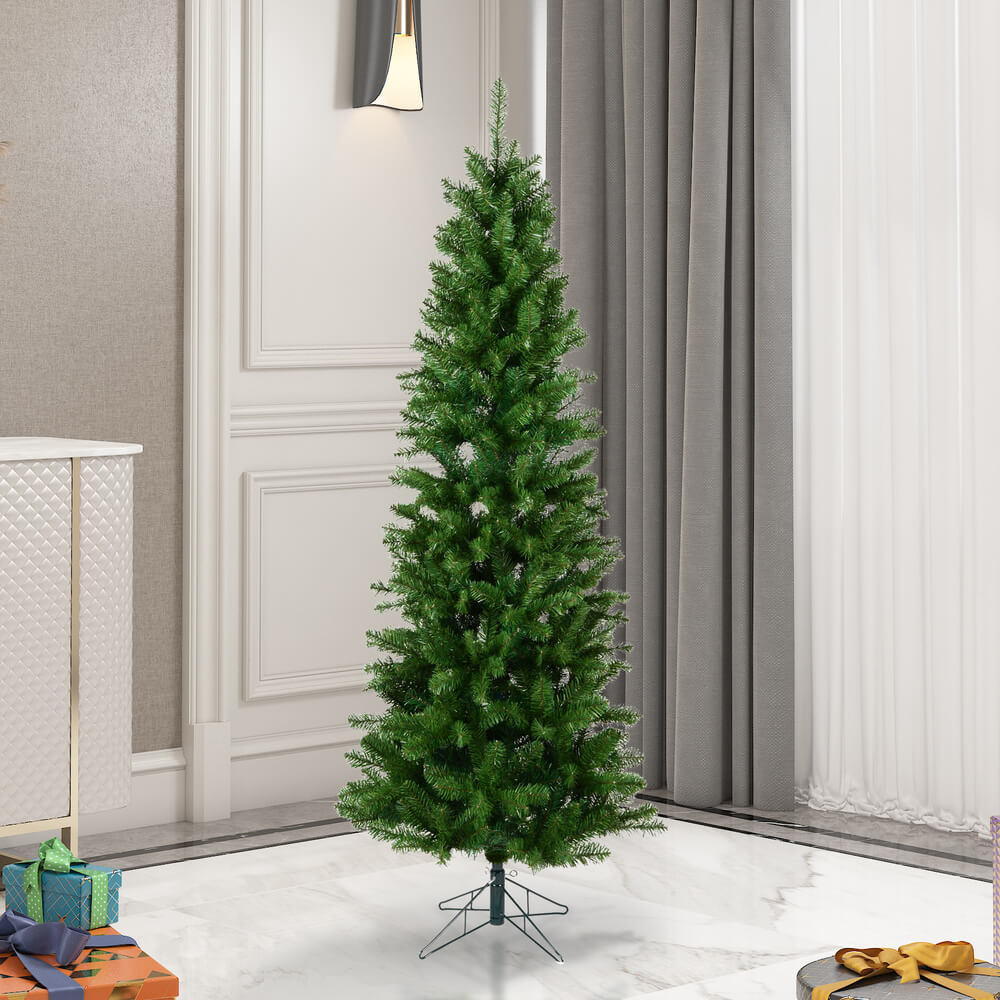 The Vickerman 4.5' Salem Pencil Pine Artificial Christmas Tree (Model A103045) offers a slim and stylish silhouette perfect for compact spaces. Crafted with 217 rich green PVC tips on metal hinged branches, this tree provides a natural, full appearance while being easy to assemble and store. Its unlit design lets you customize your lighting and decor to match your holiday theme. Complete with a durable metal stand, this tree is an ideal choice for apartments, offices, or cozy corners where space is limited but festive spirit shines bright.