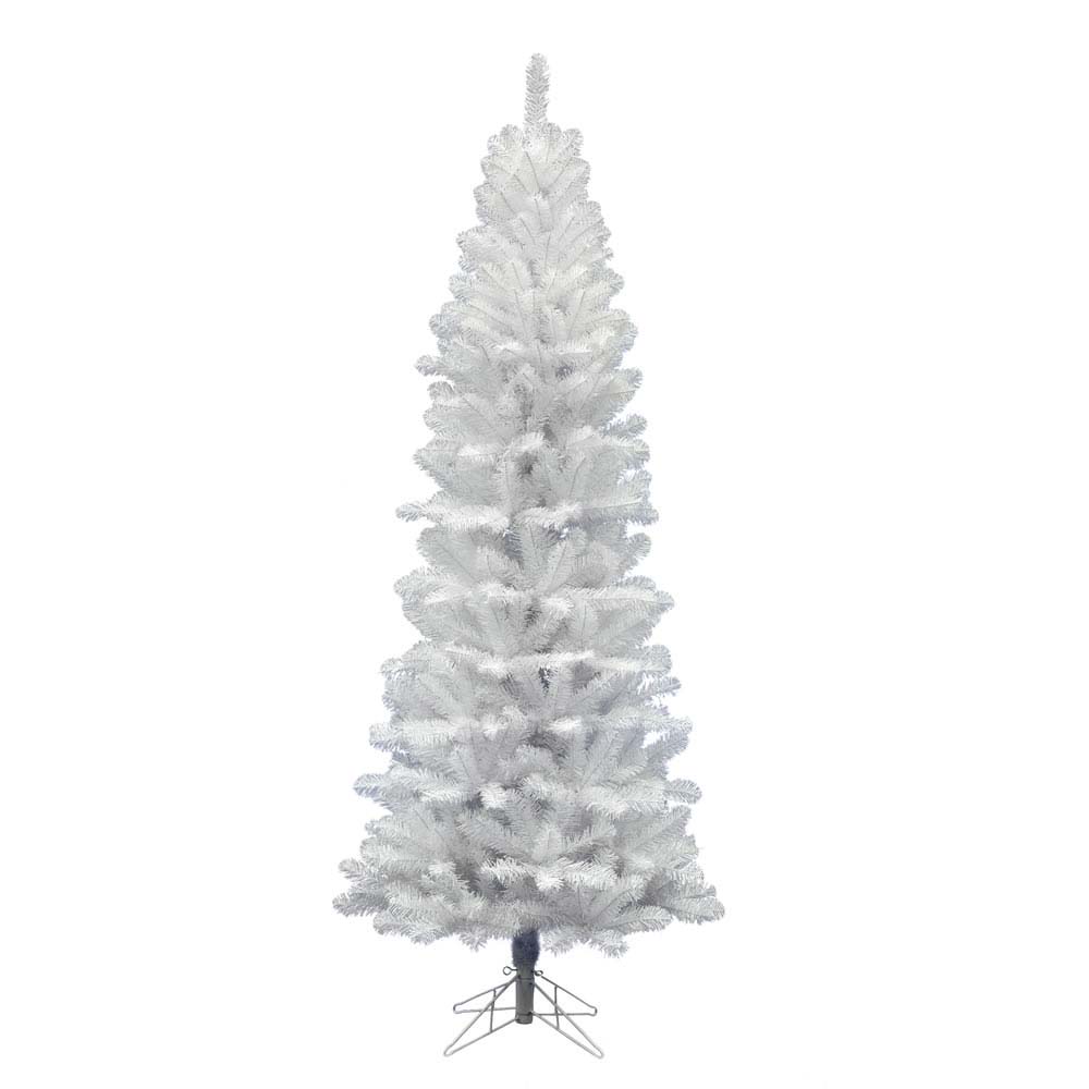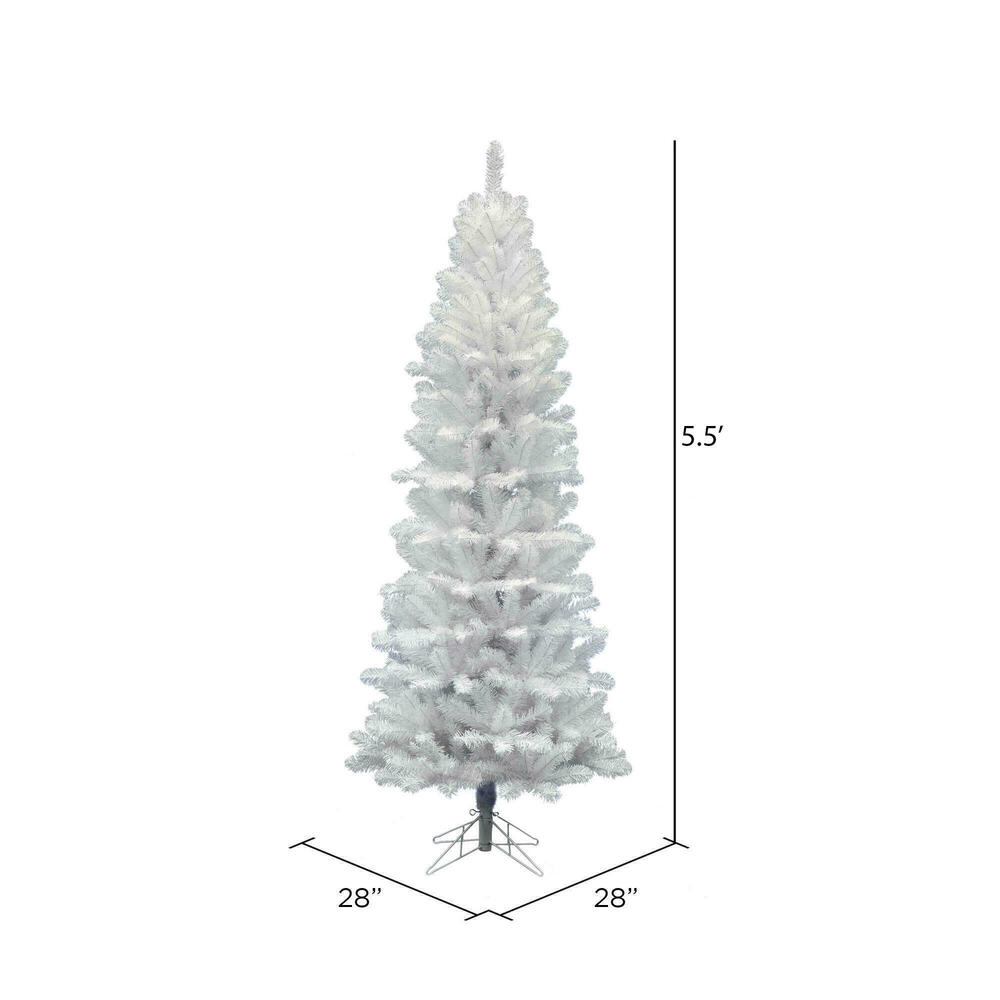 Add a touch of winter brilliance to your holiday decor with the Vickerman 5.5' White Salem Pencil Pine Artificial Christmas Tree, Unlit (Model A103255). Standing 5.5'feet tall and 28 inches wide, this slim, space-saving tree brings a modern twist to traditional holiday style. Crafted with 343 white PVC tips, it creates a bright and elegant display that pairs beautifully with colorful ornaments and custom lighting. The hinged branch design ensures quick setup and easy takedown, while the sturdy metal stand provides lasting stability. Perfect for smaller spaces or contemporary settings, this unlit pencil pine tree offers timeless charm and versatility for your festive celebrations.