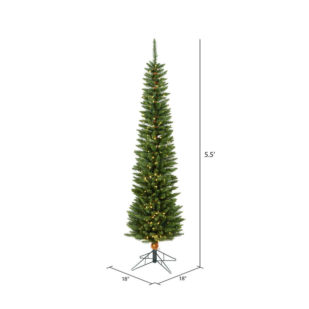 Bring festive lighting to small spaces with the Vickerman 5.5' Durham Pole Pine Artificial Christmas Tree (Model A103656LED). Standing 5.5'feet tall and 18 inches wide, this narrow tree is perfect for apartments, offices, or accent displays. It features 294 green PVC branch tips for a realistic pole pine appearance and is pre-lit with 150 warm white Italian Dura-Lit LED mini lights for a soft, even glow. Hinged metal branches allow easy setup and takedown, while the sturdy metal stand ensures stability. This compact, pre-lit pole pine tree offers elegance and convenience for holiday decorating.