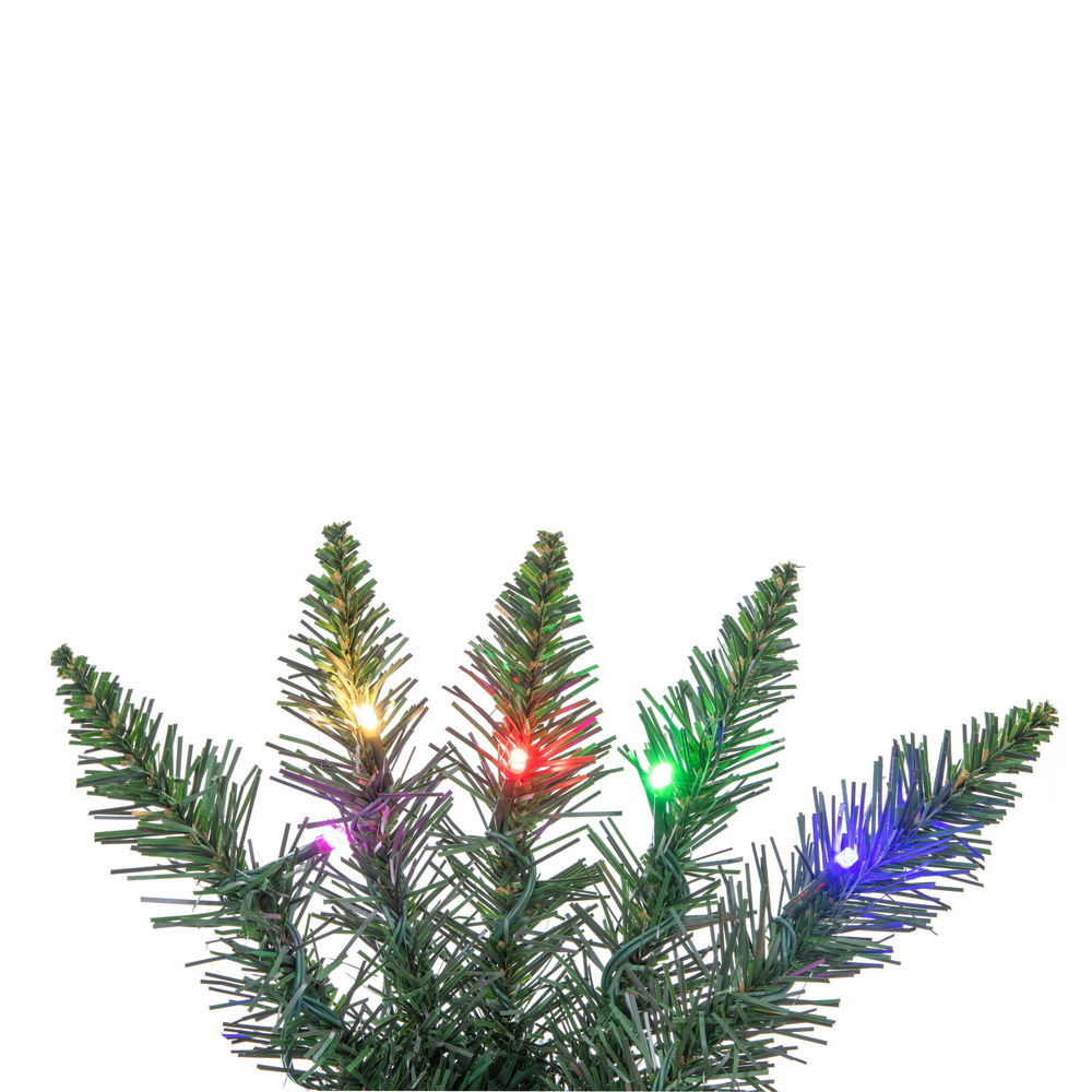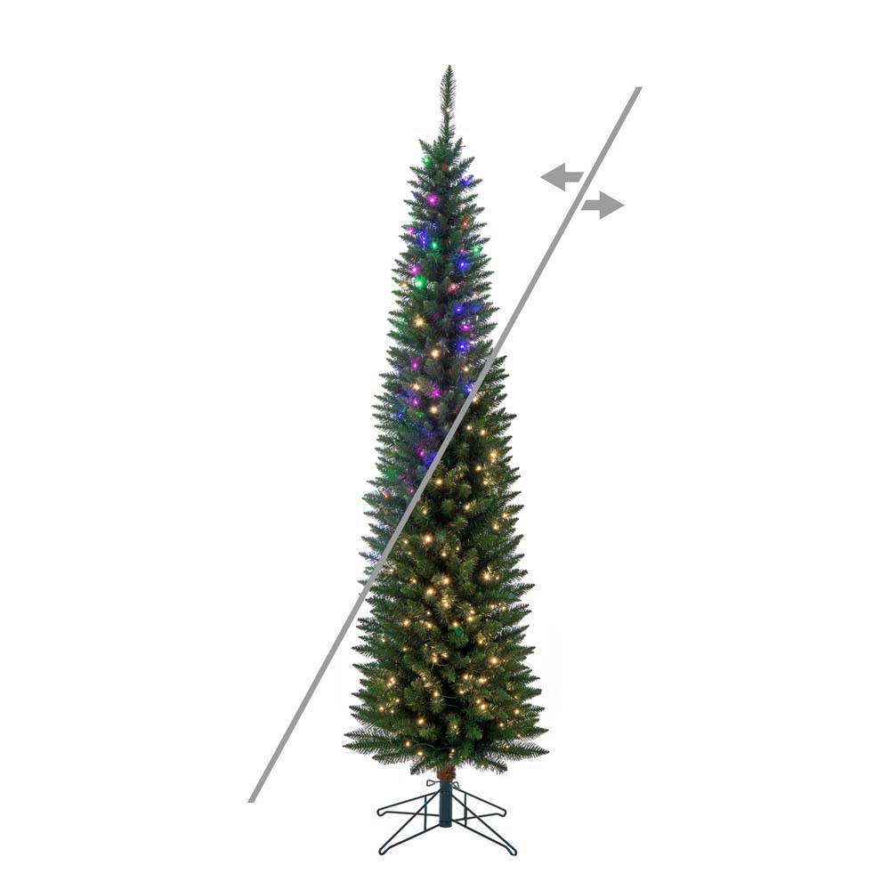 Bring vibrant holiday lighting to narrow spaces with the Vickerman 5.5' Durham Pole Pine Artificial Christmas Tree (Model A103658LEDCC). Standing 5.5'feet tall with an 18-inch width, this compact tree features 294 green PVC branch tips for a realistic pole pine profile. Pre-lit with 150 low-voltage 3mm color-changing wide-angle coaxial LEDs, it offers eight lighting functions including steady, fading, or twinkle in warm white or multi-color. The included remote control and step-on foot switch provide effortless operation, while hinged metal branches ensure easy setup and storage. A folding metal stand completes this versatile, eye-catching pre-lit tree, ideal for apartments, offices, or accent holiday decor.