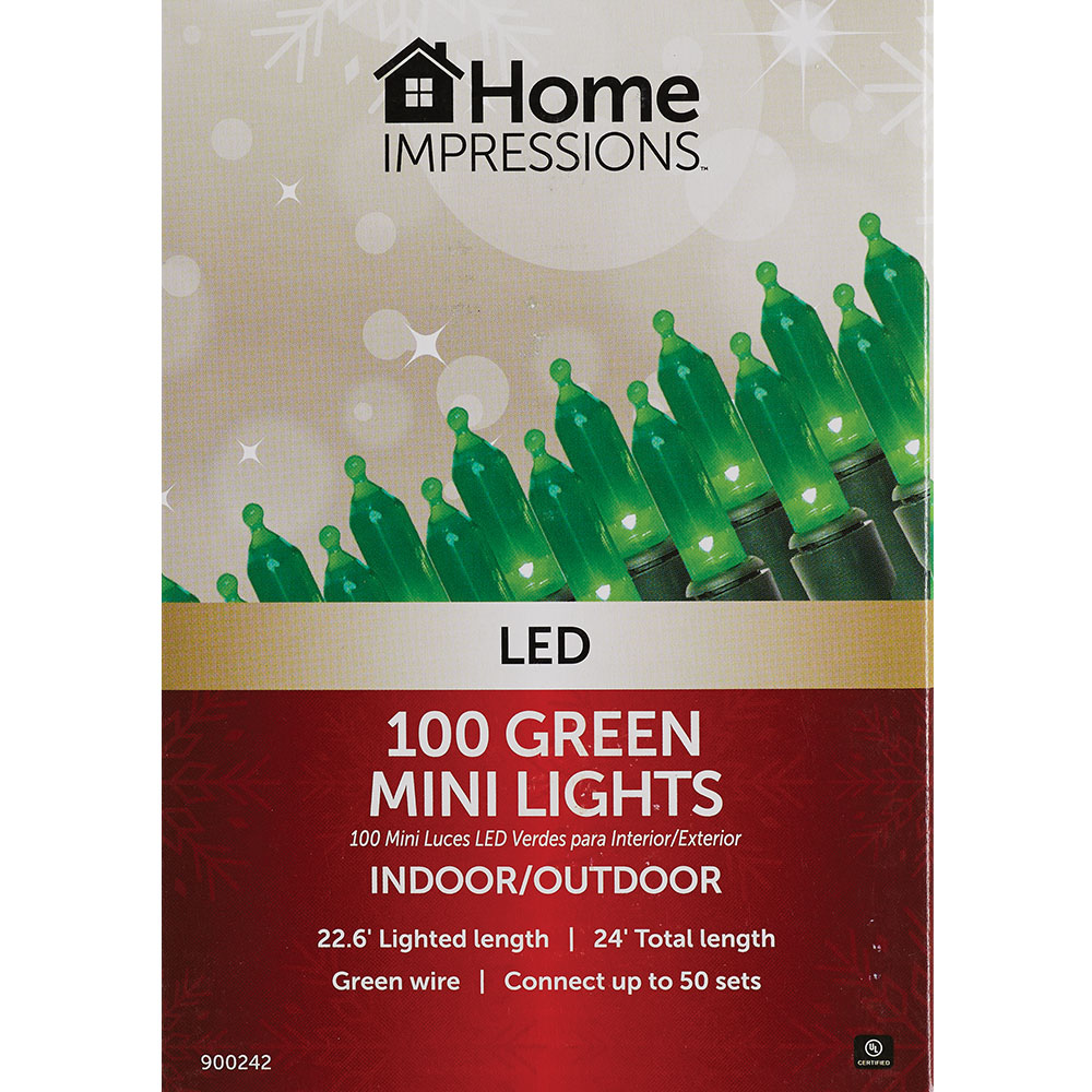 Illuminate your home or event space with the bold, cheerful glow of the Home Impressions Green 100-Bulb Italian Style LED Light Set. Perfect for holiday decorating or adding color to any occasion, these durable LED string lights feature 100 green bulbs spaced 2.5 inches apart for even, consistent illumination. With a 22.6 ft lighted length and a total length of 24 ft, they’re ideal for both indoor and outdoor use. The break-resistant, cool-to-the-touch bulbs provide long-lasting performance with a 25,000-hour average bulb life. Connect up to 21 sets end-to-end to create a seamless, dazzling display that’s energy-efficient and built to last.