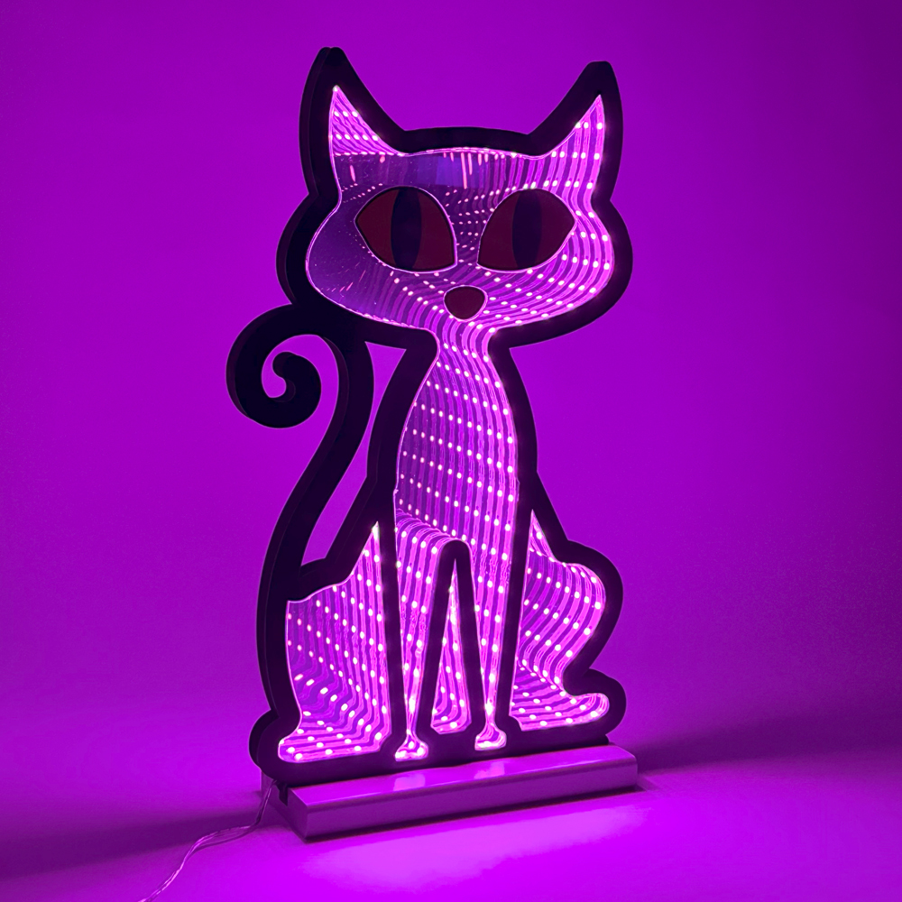 Hallioween Pink Cat LED Infinity Light - 15.6