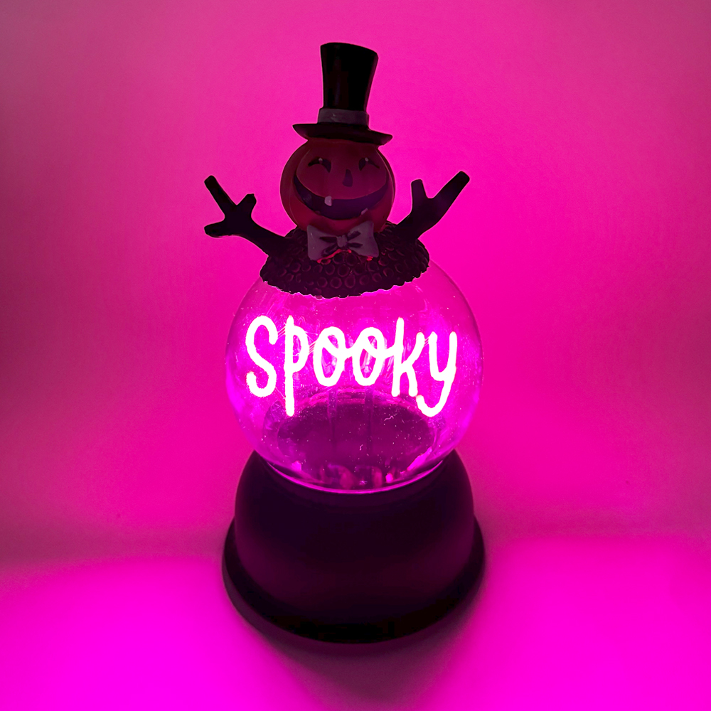 • Lighted Halloween globe with pumpkin design