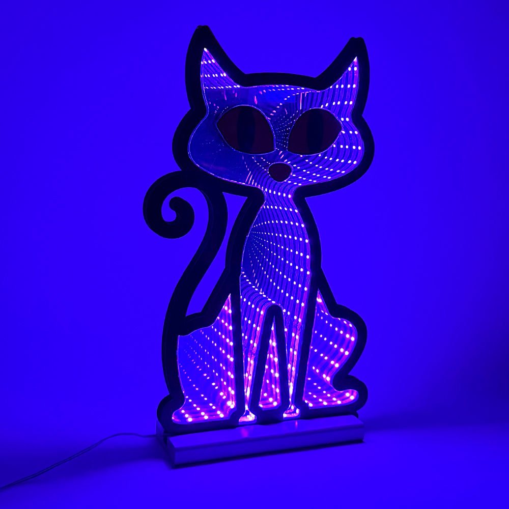 Halloween Purple Cat LED Infinity Light - 15.6"