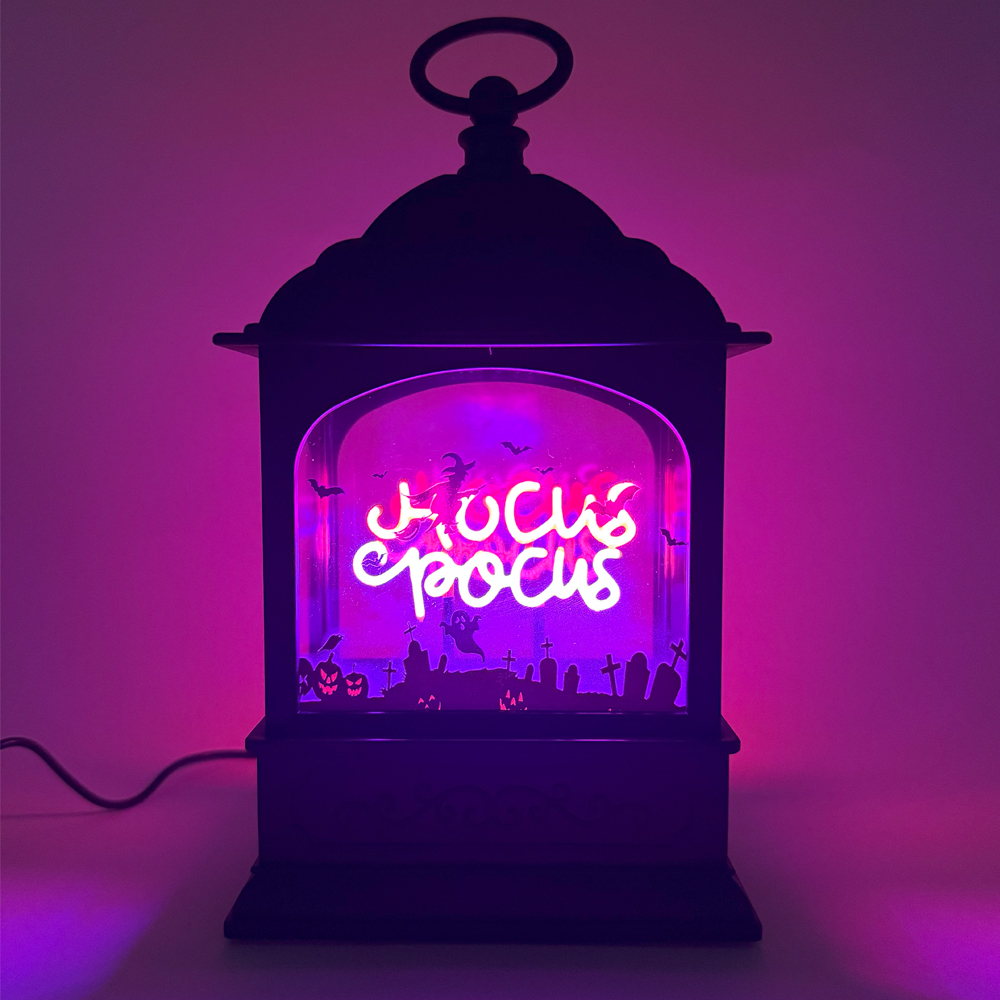Battery Operated "Hocus Pocus" Neon Halloween Lantern - 9"