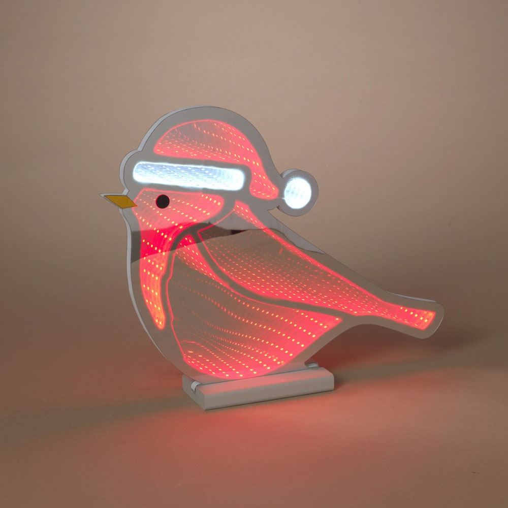 Add warmth and charm to your holiday décor with this beautifully designed Holiday Cardinal LED Infinity Light. The elegant cardinal motif glows within a mirrored infinity display, creating a mesmerizing illusion of endless light. Built with a sleek wooden base, this 15.6" tall electric decoration brings natural texture and timeless style to your home. Ideal for mantels, shelves, or tabletop displays, the energy-efficient LED illumination adds festive brilliance while maintaining a cozy ambiance. Plug in this radiant accent to celebrate the joy of the holidays with a peaceful, nature-inspired glow.