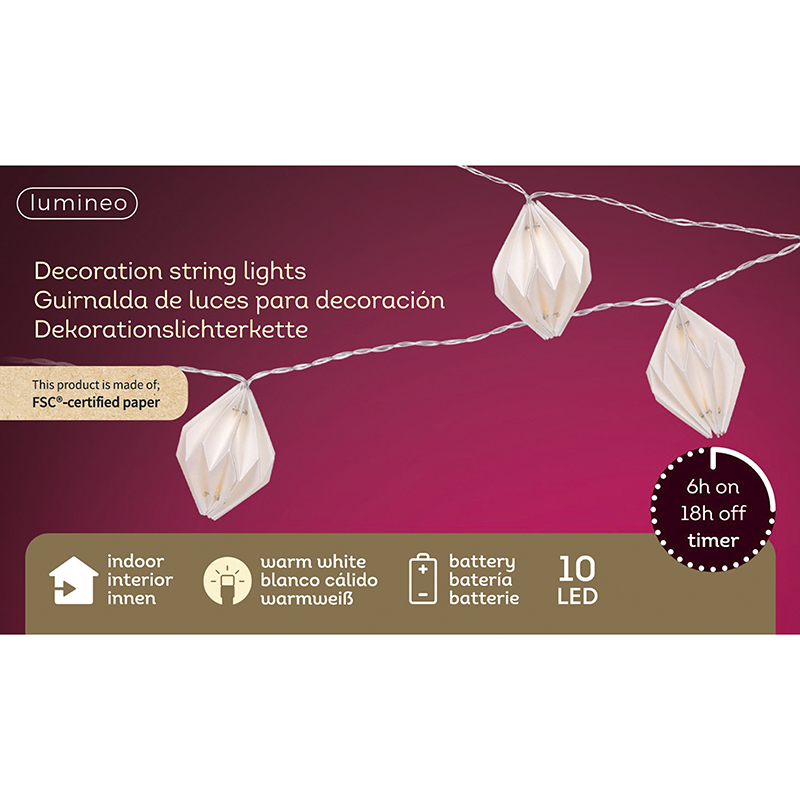 Bring a soft, warm glow to your home with these LED Decorative Paper Lantern String Lights. Each of the 10 LEDs is covered with a FSC-certified paper lantern, adding a charming and eco-friendly touch to your indoor décor.