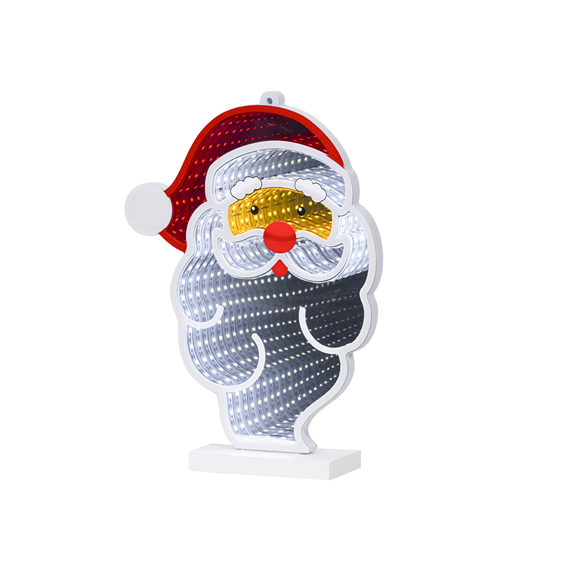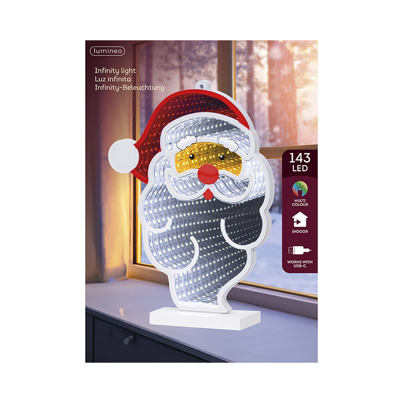 Add a festive focal point to your holiday décor with this Santa Head LED Infinity Light. The bright and cheerful Santa design is illuminated by 143 LEDs, creating an eye-catching infinity mirror effect that draws the eye and adds depth to your indoor display.