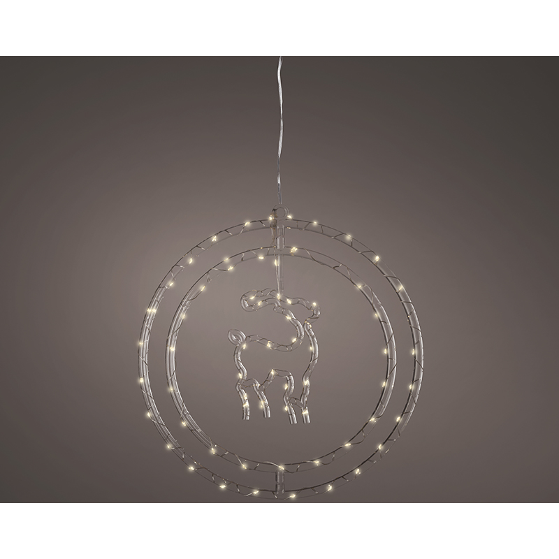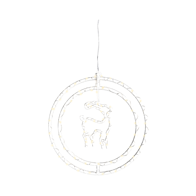 Add a touch of elegance and holiday warmth to your display with the Warm White LED Frame Reindeer Light. This decorative lighting accent features a glowing circle frame (approx. 1′ × 1.1′) with a reindeer silhouette illuminated inside. The 67 warm white LEDs provide steady, soft illumination, while the 3.3-foot lead wire allows for flexible positioning. Because it runs on 3 AA batteries, there’s no need to worry about cords or limiting outlet access—simply place it where it shines best. Use it on mantels, shelves, tables, or in window displays to bring festive flair and a graceful seasonal motif to your décor.