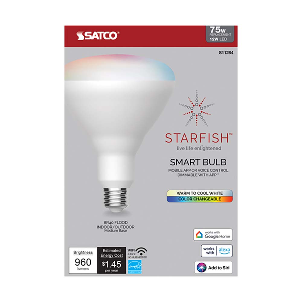 With integrated Starfish IOT compatibility, you can conveniently control brightness, color temperature, and customized lighting scenes through connected smart systems. The energy-efficient 12 Watt design reduces power consumption while offering long-lasting performance compared to traditional incandescent BR40 lamps. Ideal for living rooms, kitchens, family rooms, retail spaces, hospitality environments, and event lighting, this versatile lamp provides dependable and flexible illumination. Whether enhancing everyday comfort or creating bold color effects, this BR40 RGB and tunable white LED delivers reliable performance with modern smart functionality.