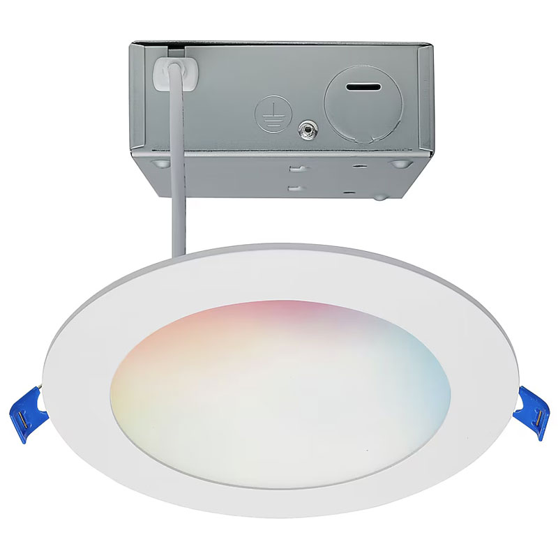 This smart recessed light allows users to adjust brightness, color temperature, and RGB color settings directly from a mobile app or voice commands. The tunable white range allows for warm ambient lighting or crisp task lighting, while full RGB capability provides decorative and accent lighting options. The low-profile housing is designed for shallow ceiling cavities, making it ideal for remodels and tight spaces.